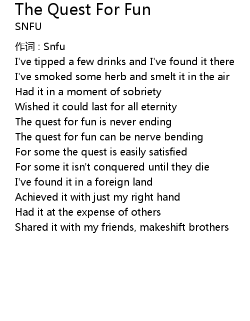 | 歌曲 | The Quest For Fun |