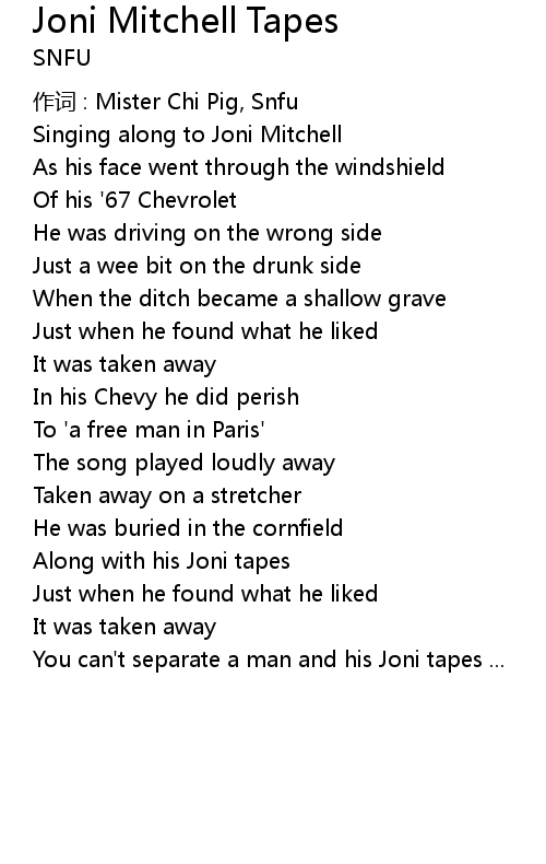 | 歌曲 | Joni Mitchell Tapes |