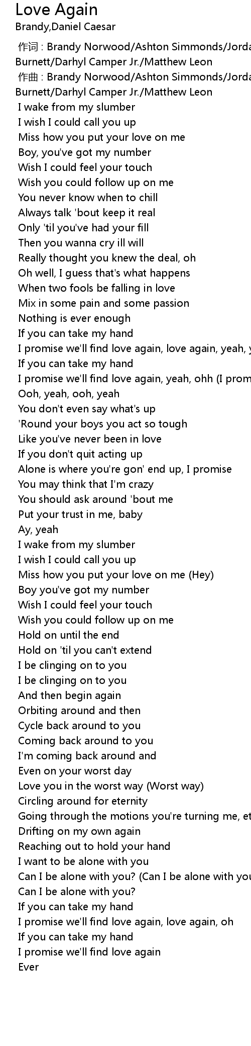 | [00:54.211] | I promise we'll find love again, love again, yeah, yeah |