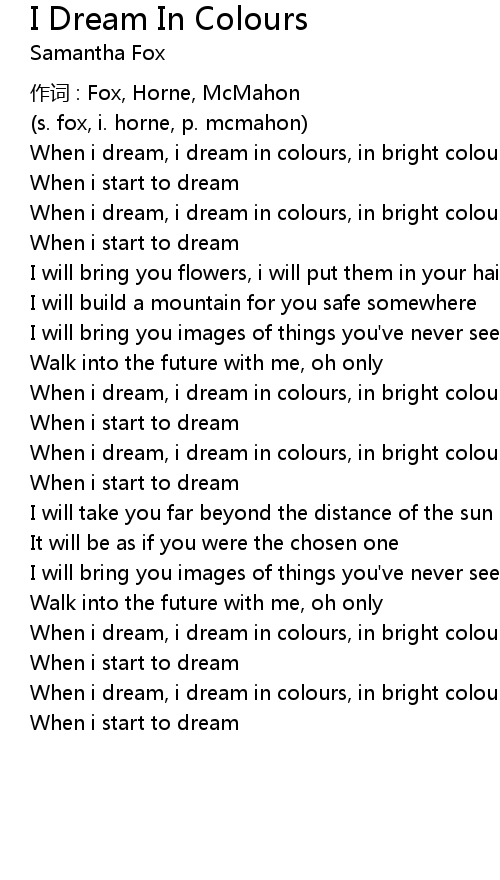 | When i dream, i dream in colours, in bright colours, yeah | |