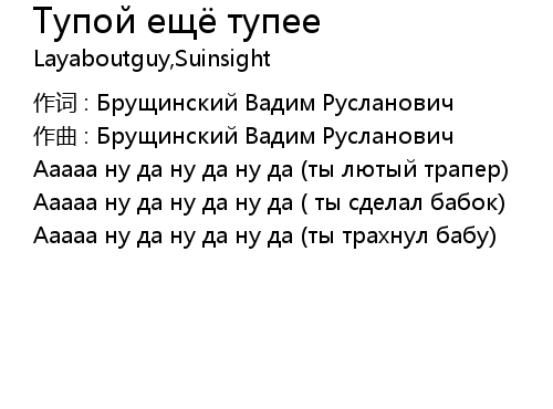 | 歌曲 | Тупой ещё тупее |