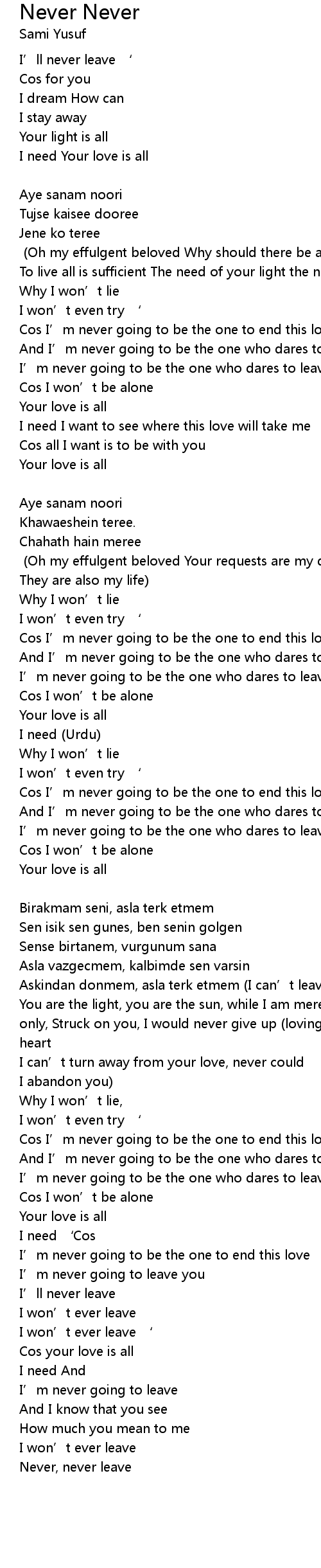| I need So don’t ever leave [Urdu] | |
