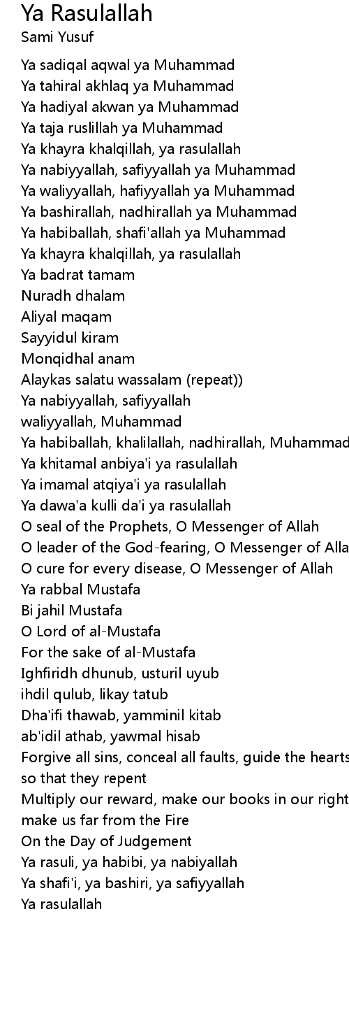 Ya Rasulallah 歌词