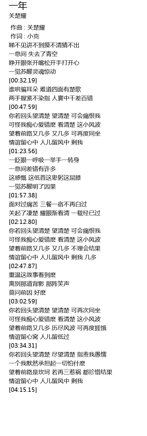 | [00:00.00] | zuò qǔ : guān chǔ yào |