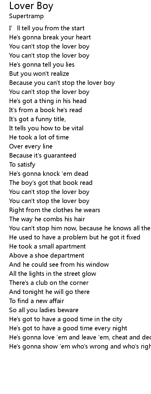 | [00:47.40] | You can't stop the lover boy |