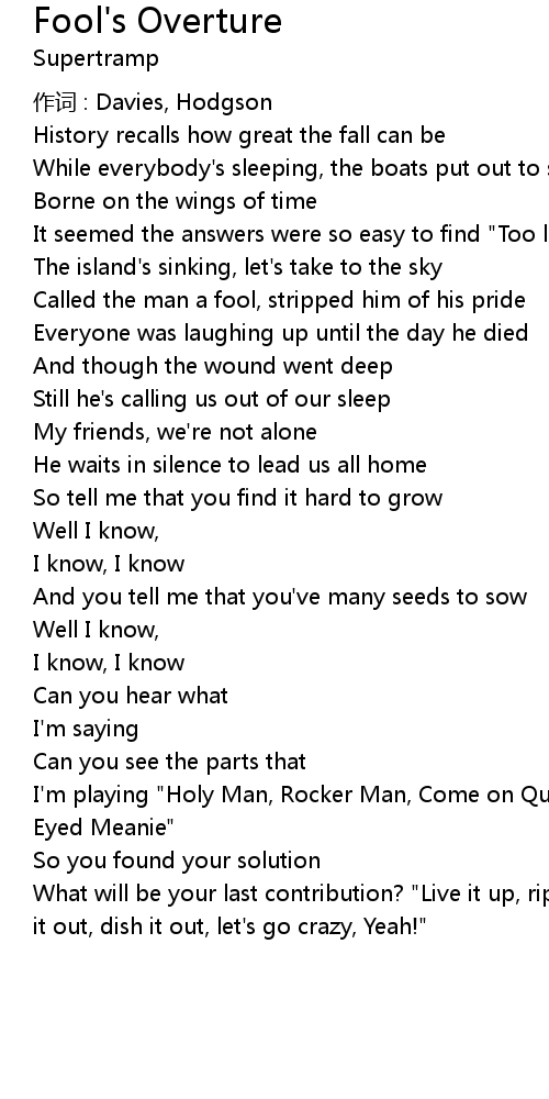 | It seemed the answers were so easy to find " Too late," the prophets cry | |