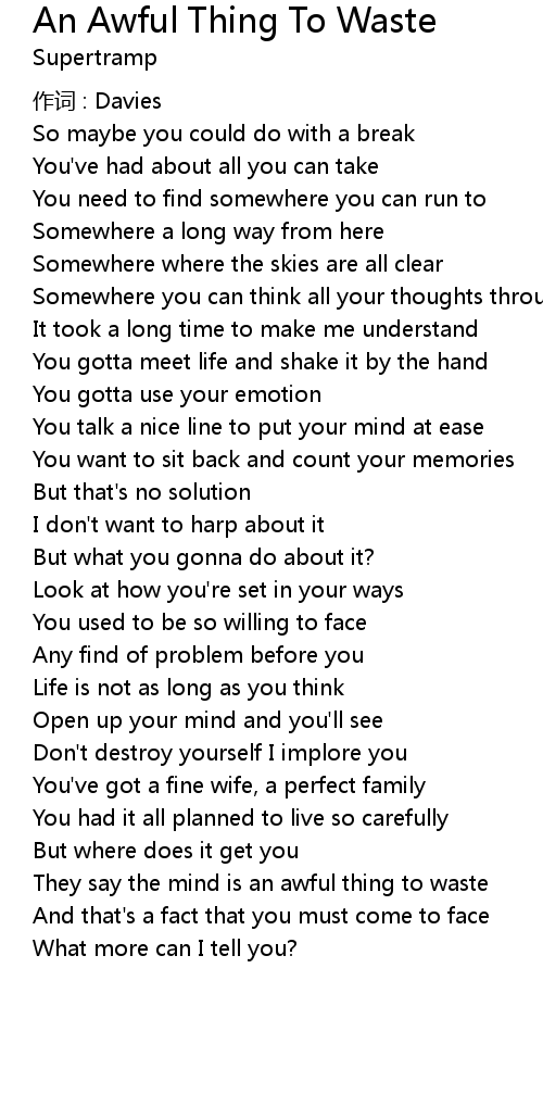 | They say the mind is an awful thing to waste | |