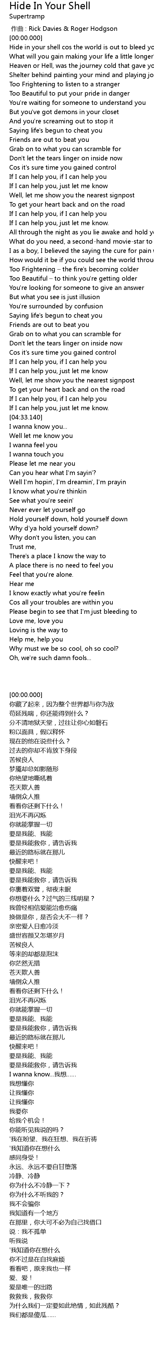 | [00:18.530] | Hide in your shell cos the world is out to bleed you for a ride |