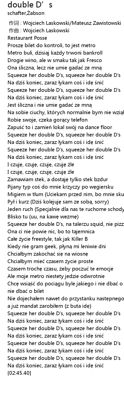 | [01:36.33] | Squeeze her double D' s, na talerzu squid, nie pizza |