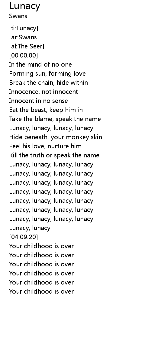 | [03:40.70] | Lunacy, lunacy, lunacy, lunacy |