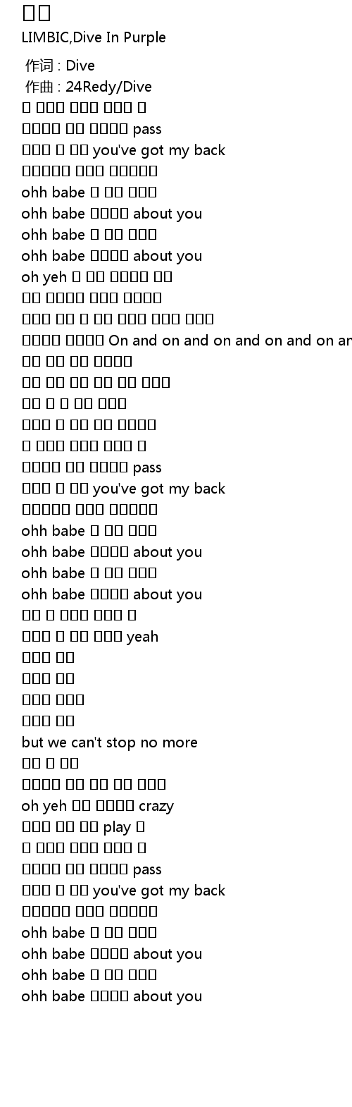 | [00:33.995] | ohh babe 알아보려 about you |