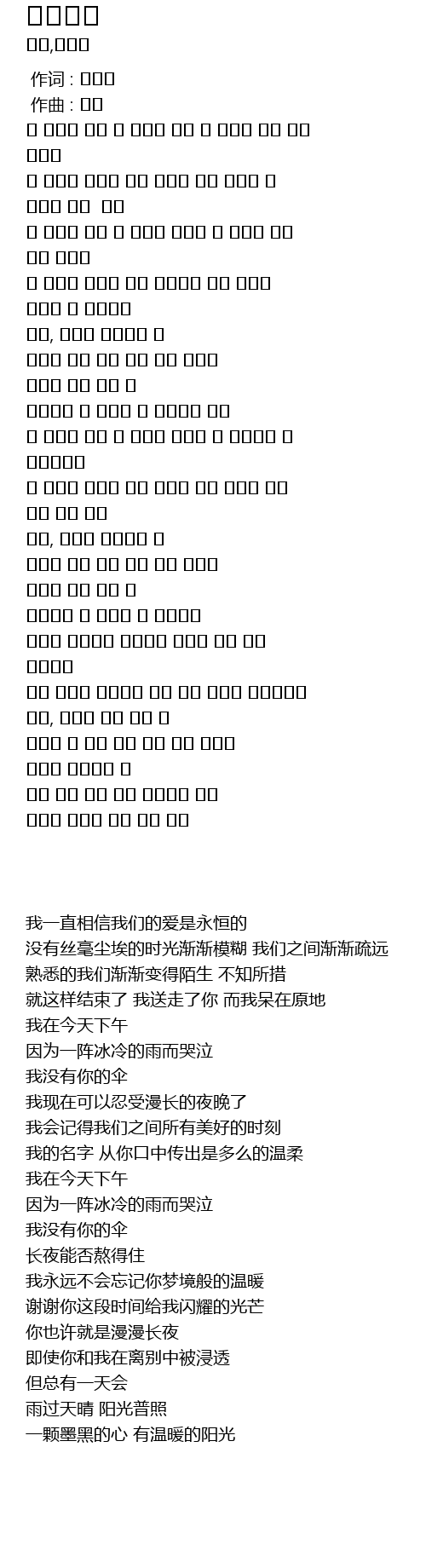 | [04:13.299] | 一颗墨黑的心 有温暖的阳光 |