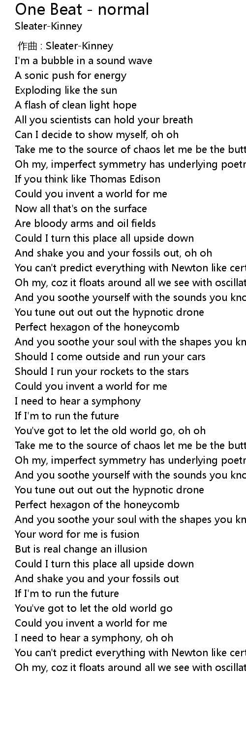 | [00:00.00] | 作曲 : Sleater-Kinney |