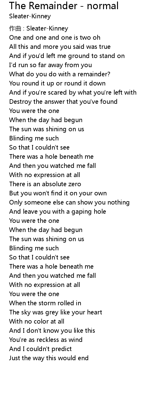 | 歌曲 | The Remainder - normal |