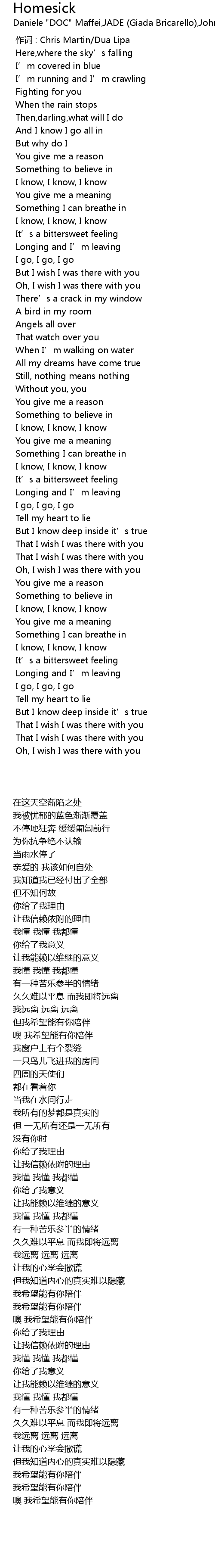 | 歌曲 | Homesick |