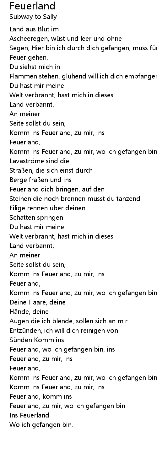 | Komm ins Feuerland, zu mir, wo ich gefangen bin, | |