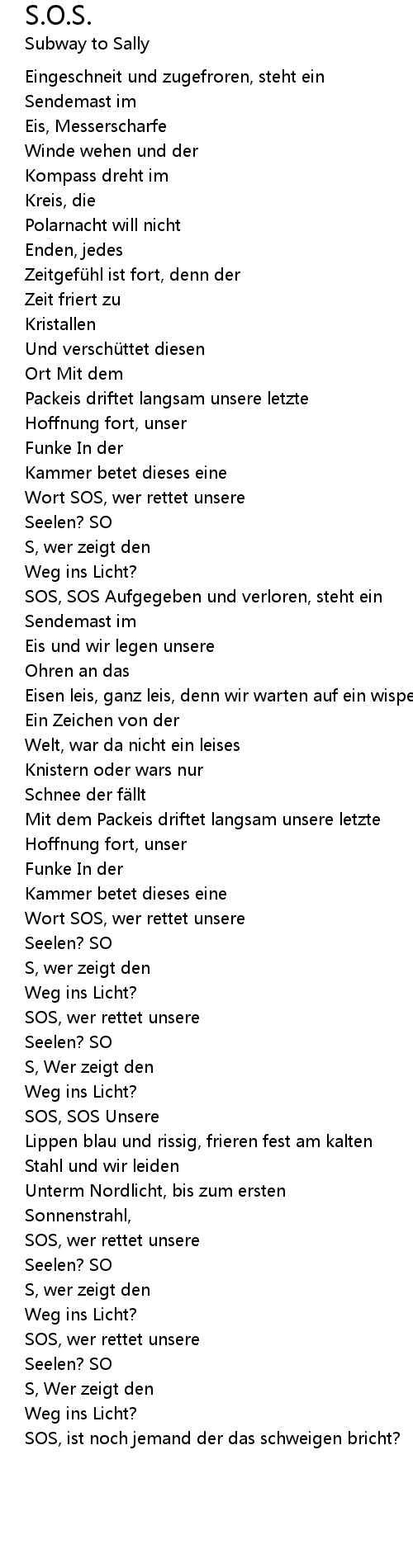 | SOS, SOS Aufgegeben und verloren, steht ein | |