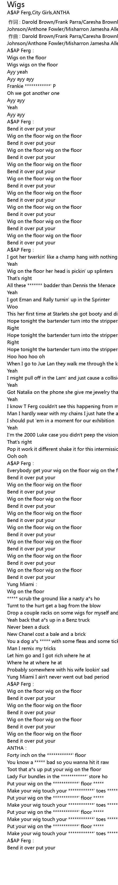 | [02:33.82] | Put your wig on the ************' floor ***** |