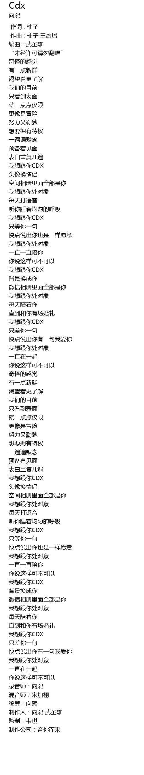 | [00:39.95] | wǒ xiǎng gēn nǐ CDX |