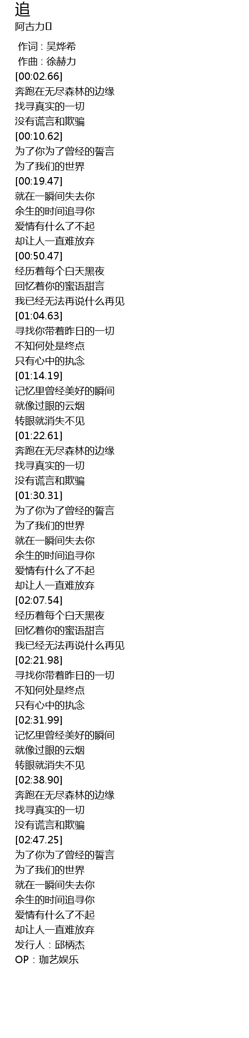| [03:12.76] | 发行人:邱柄杰 |