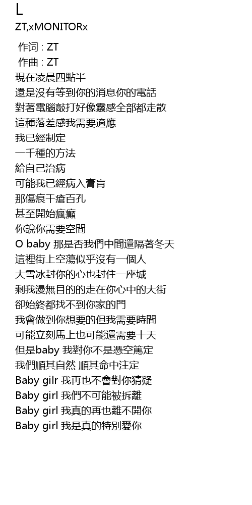 | [00:59.687] | Baby girl 我真的再也離不開你 |