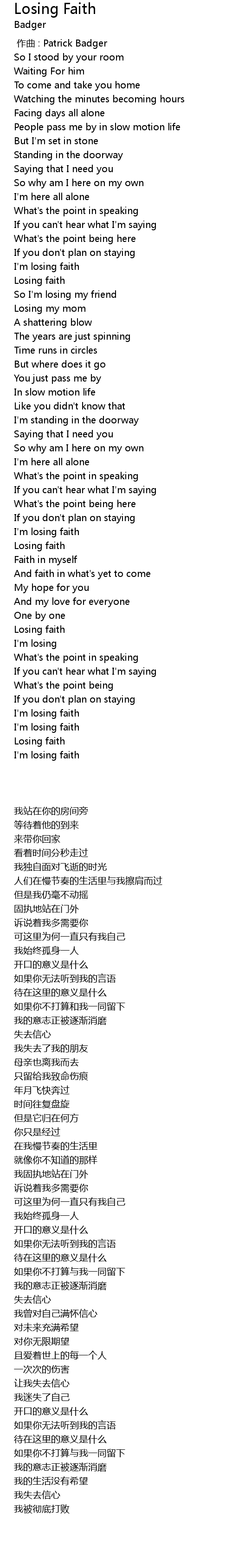 | 歌曲 | Losing Faith |