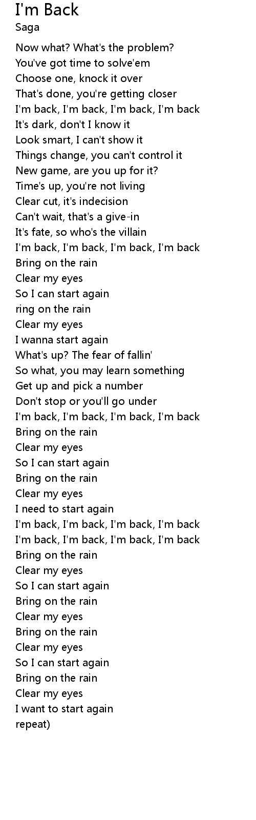 | I'm back, I'm back, I'm back, I'm back | |
