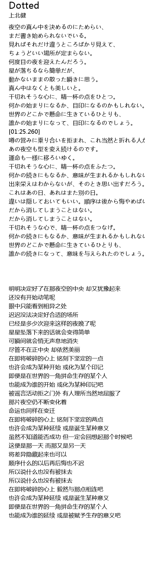 | [01:52.300] | 那片夜空仍不断变化着 |