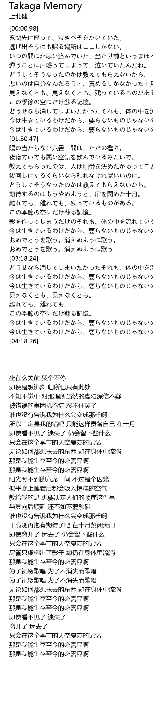 | [03:33.64] | 今は生きているわけだから、要らないものじゃないのさ。 |
