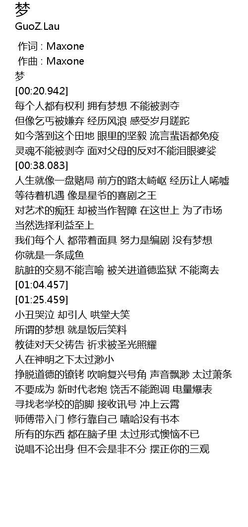 | [00:24.444] | 每个人都有权利 拥有梦想 不能被剥夺 |