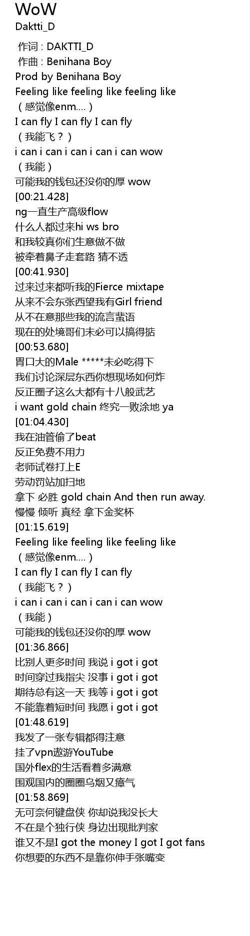 | [02:04.869] | shui you bu shi I got the money I got I got fans |