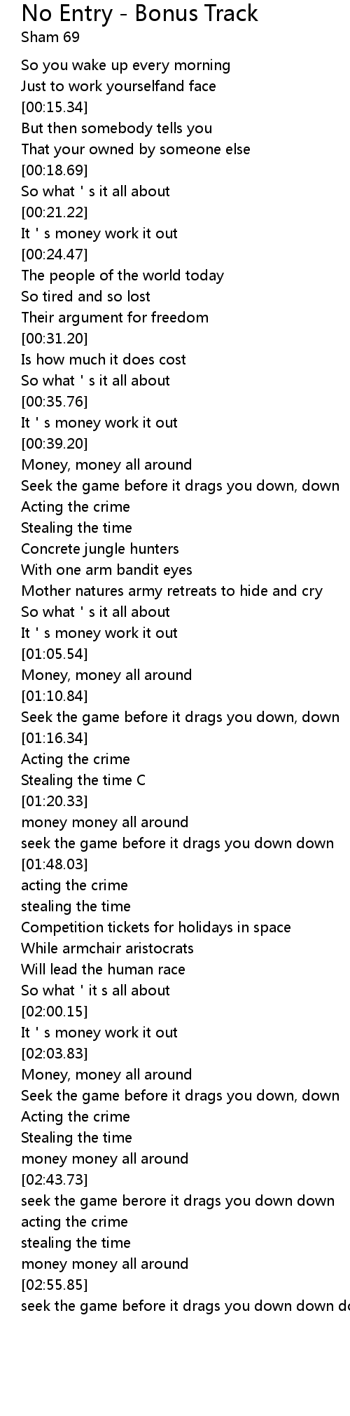 | [01:02.87] | It s money work it out |