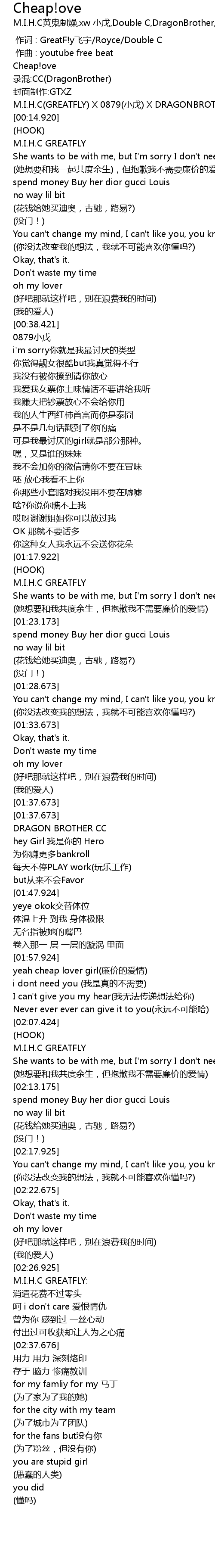 | [02:00.674] | yeah cheap lover girl(廉价的爱情) |