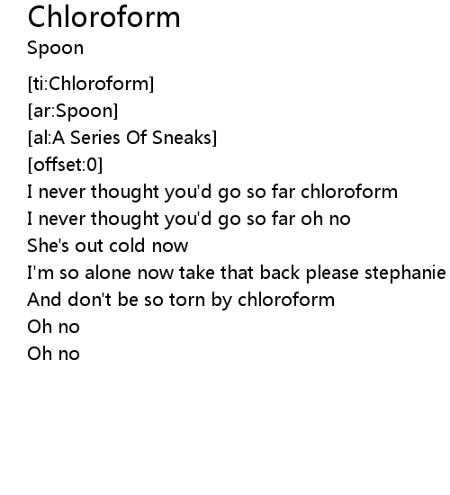 | [00:04.93] | I never thought you'd go so far chloroform |