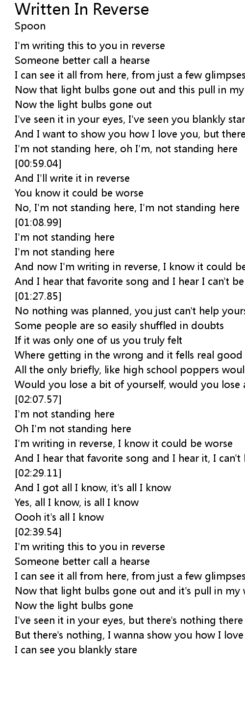 歌曲 Written In Reverse
