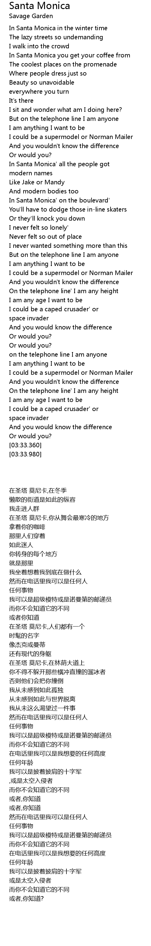 | [01:25.910] | 在圣塔 莫尼卡,在林荫大道上 |