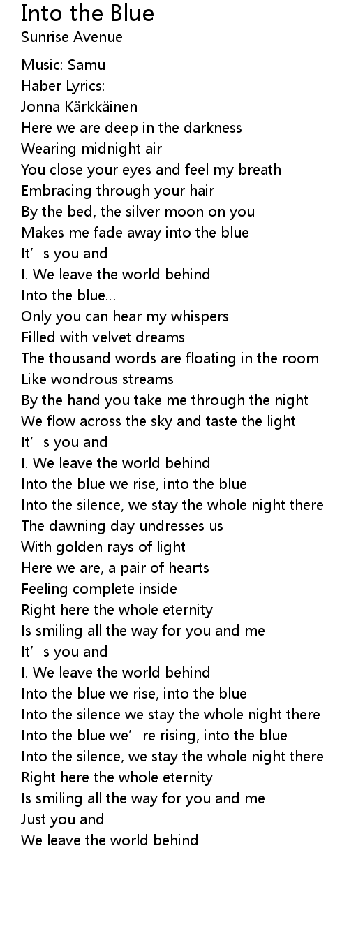 | Into the blue we' re rising, into the blue | |