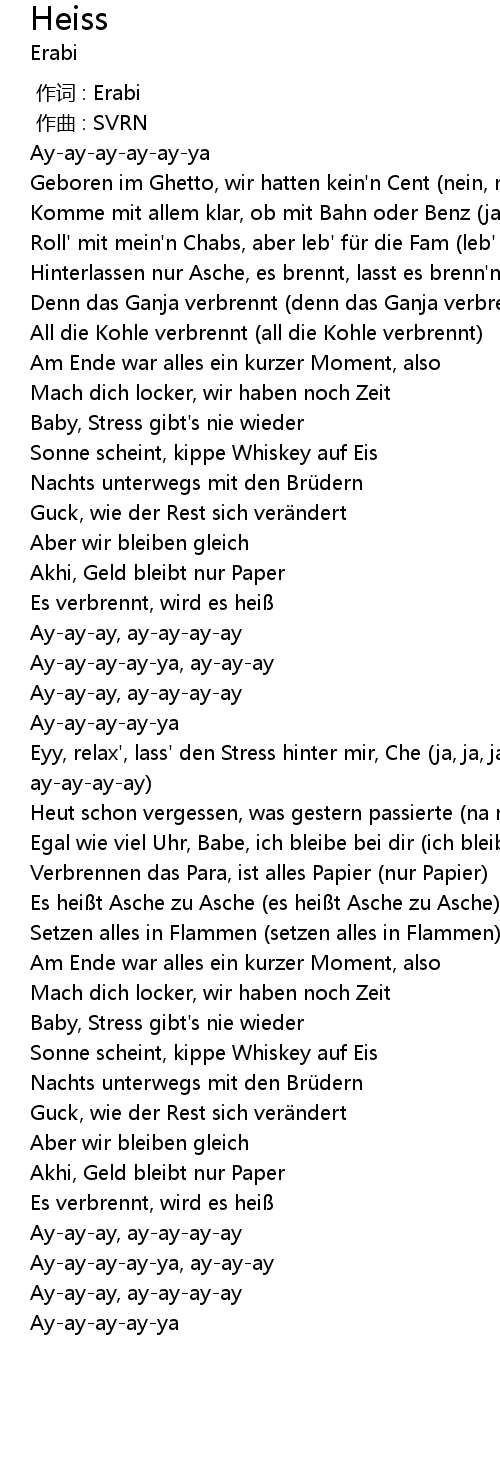 | [00:54.75] | Es verbrennt, wird es heiß |
