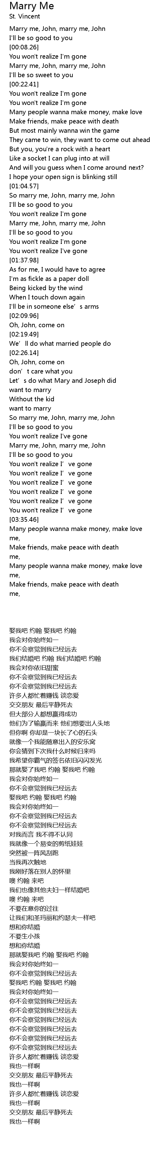 | [03:01.64] | Marry me, John, marry me, John |
