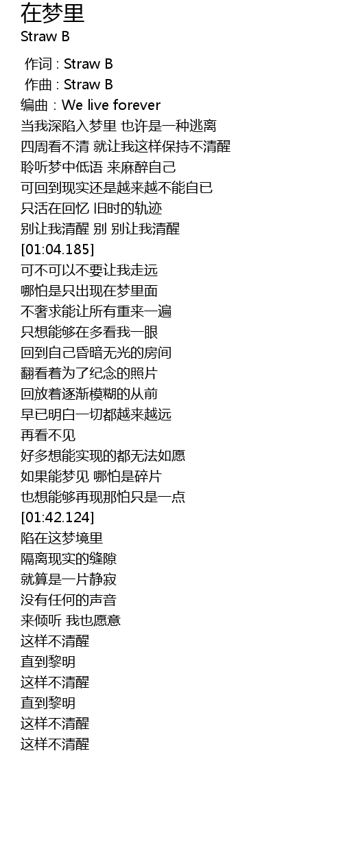 | [00:58.940] | 别让我清醒 别 别让我清醒 |