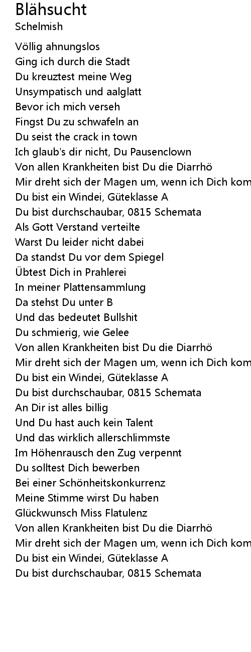 | Mir dreht sich der Magen um, wenn ich Dich kommen seh' | |