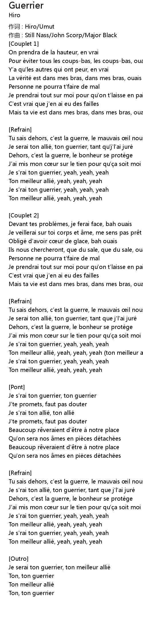| Je s'rai ton guerrier, yeah, yeah, yeah | |