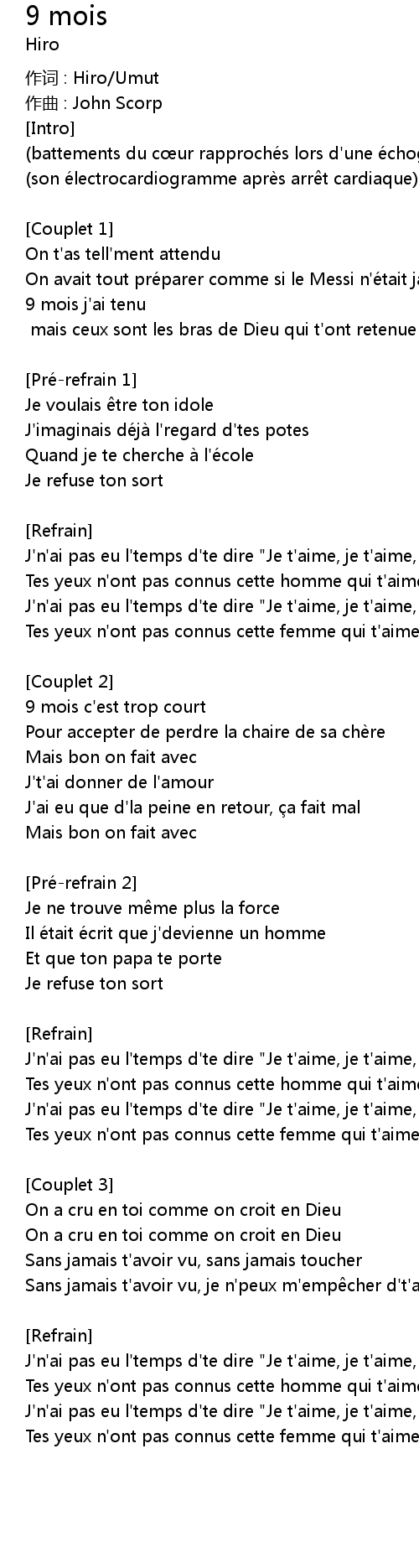 | J' n' ai pas eu l' temps d' te dire " Je t' aime, je t' aime, je t' aime" | |
