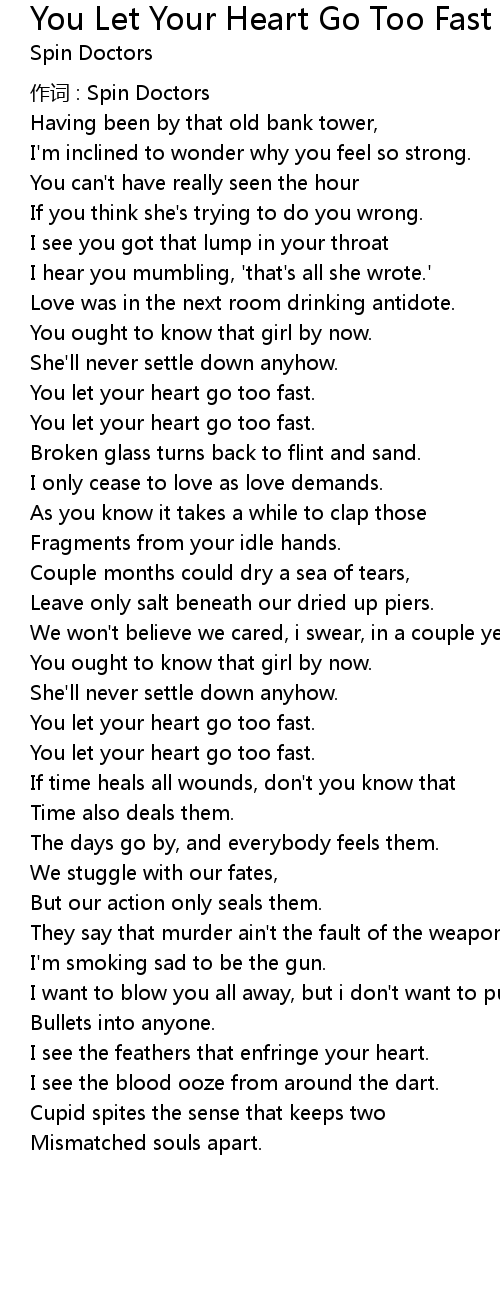 | 歌曲 | You Let Your Heart Go Too Fast |
