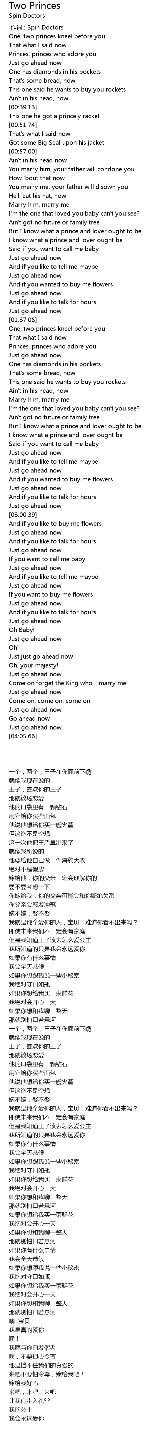 | 歌曲 | Two Princes |