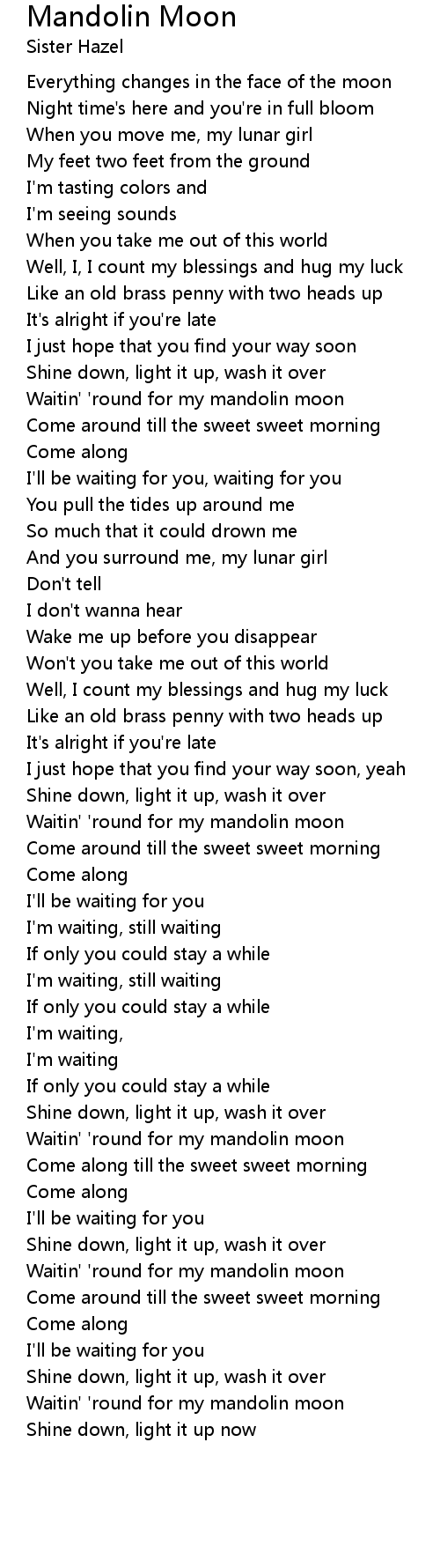 Waitin' 'round for my mandolin moon |