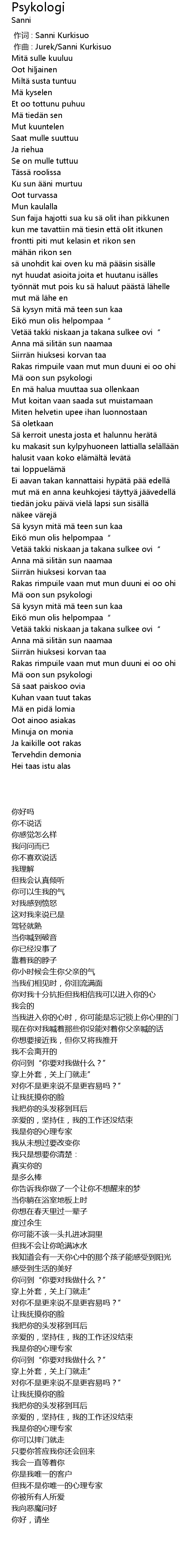 | [00:00.000] | 作词 : Sanni Kurkisuo |