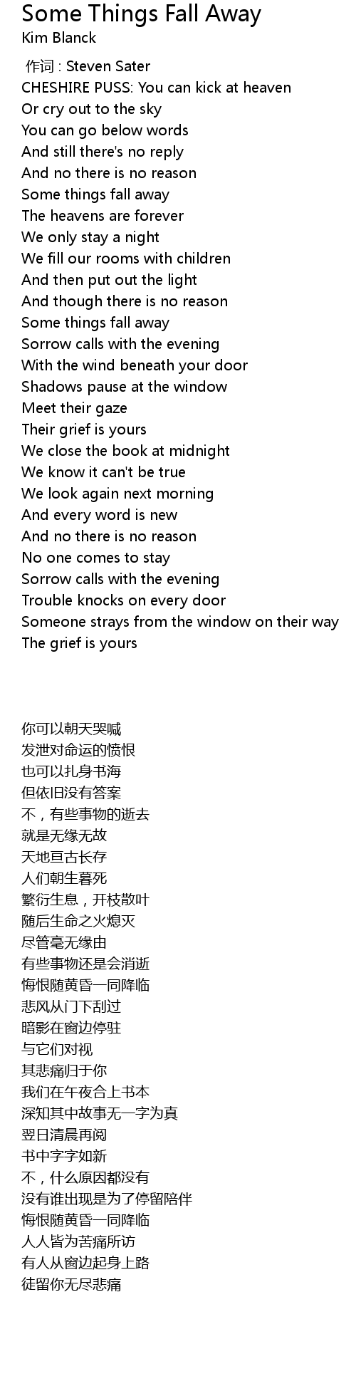 | 歌曲 | Some Things Fall Away |