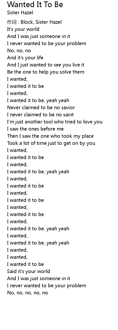 | 歌曲 | Wanted It To Be |