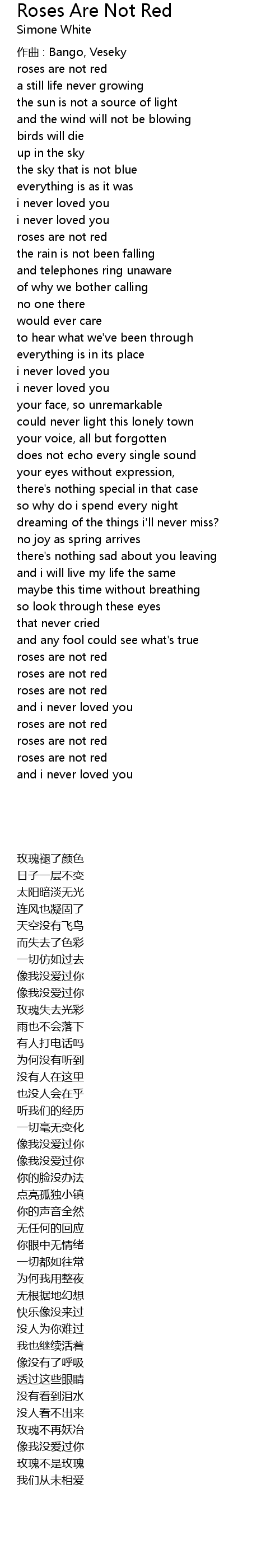 | 歌曲 | Roses Are Not Red |